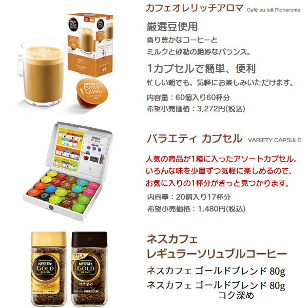 ドルチェグスト ジェニオ2 スターターキット [内容物] 本体(ジェニオ2 ワインレッド) カフェオレ リッチアロマ 1箱(60杯分) バラエティカプセルセット(17杯分) ゴールドブレンド レギュラー80g ゴールドブレンド コク深め80g ※ゴールドブレンドはジェニオ2用ではありません。